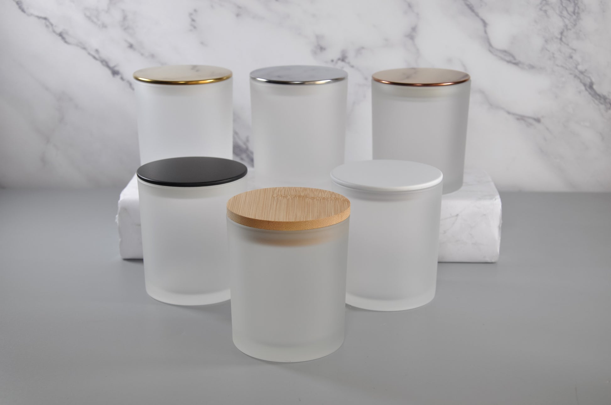 10oz Empty Clear / White Frosted Candle Glass with Choice of Lid and Gift Box and Gift Box.
